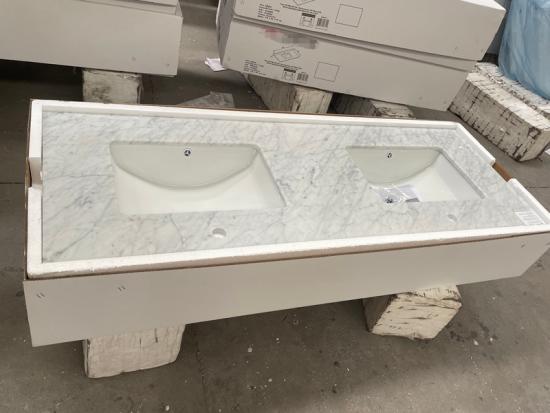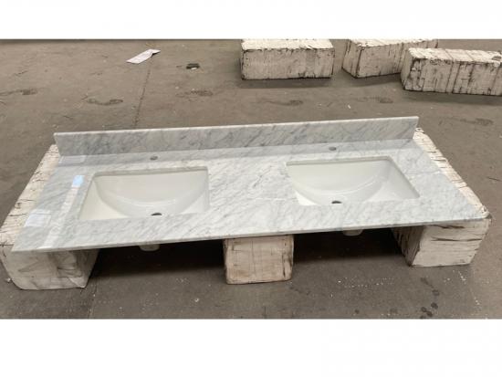 Encimera doble prefabricada de mármol blanco Carrara italiano de primera calidad de 61 pulgadas.