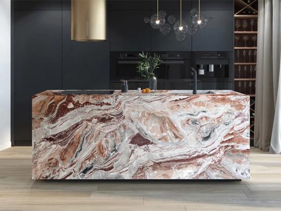 Mármol Arabescato Orobico Rosso El mármol rojo Mónica, también llamado Mármol Rojo Mónica, proviene de las prestigiosas canteras de Lombardía, Italia. Este mármol presenta una impresionante combinación de tonos rojos, grises y blancos, con intrincados veteados que evocan una obra de arte natural. Cada losa es única y ofrece una profundidad visual y una elegancia exclusivas.