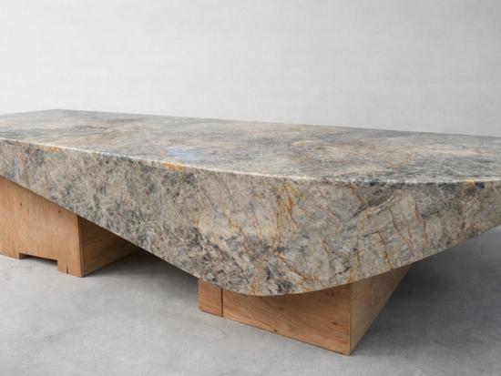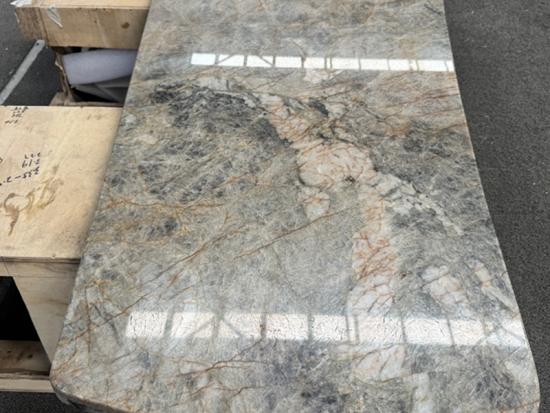 Cuarcita Cielo Es una piedra natural de primera calidad importada de Brasil, reconocida por su sofisticada paleta de grises ahumados, azules suaves y vetas de color marrón dorado.