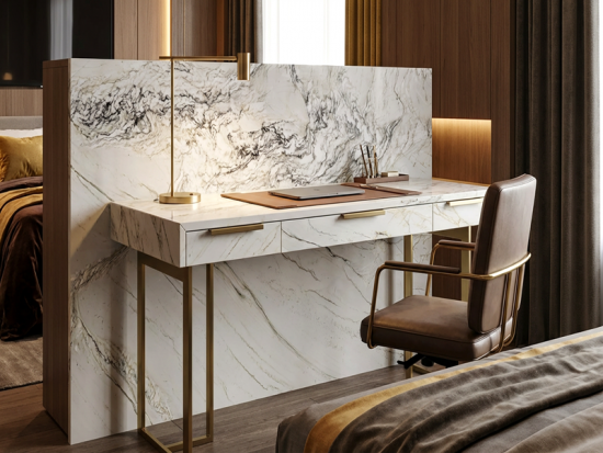Las vetas únicas de la cuarcita brasileña Snow White añaden profundidad visual y carácter a cada losa, garantizando que cada pieza sea única. Los sutiles tonos grises que recorren la piedra ofrecen un contraste impactante con su base blanca, creando una apariencia elegante y refinada que complementa una variedad de diseños de interiores, desde elegantes cocinas modernas hasta baños de hoteles de lujo y espacios comerciales de alta gama.