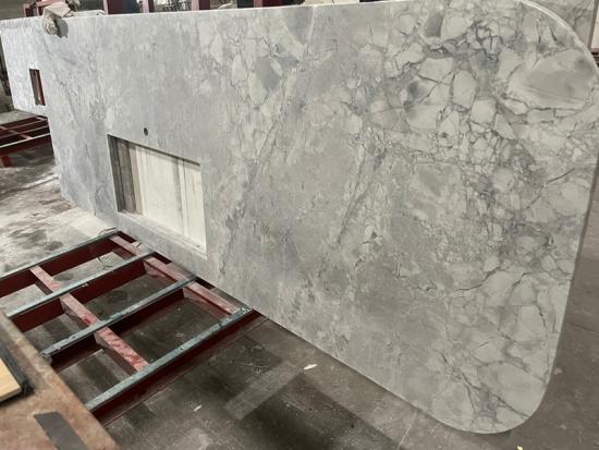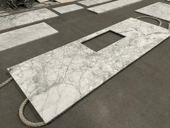 A diferencia del mármol tradicional, nuestro Losas de cuarcita súper blanca Ofrecen una densidad superior y resistencia a los ácidos, lo que los hace excepcionales. resistente a las manchas y resistentes para zonas de mucho tránsito. Las imágenes muestran nuestros precisión- cortado a medida fabricación capacidades en nuestras instalaciones. Cada pieza se procesa meticulosamente con tecnología CNC avanzada para garantizar perfiles de borde perfectos, que van desde bordes suaves y elegantes hasta sofisticadas esquinas curvas para piezas masivas. islas de cocina .