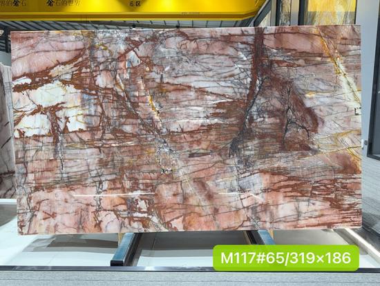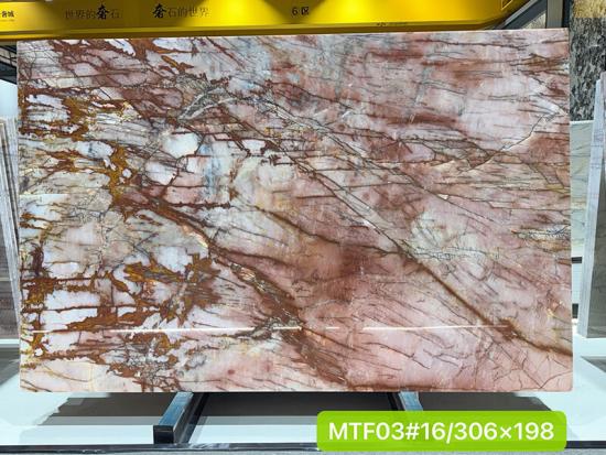 También se permite una pequeña cantidad. Veamos las fotos de las losas de Cuarcita rosa Cristallo