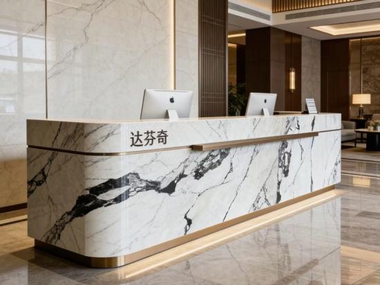 Más allá de su brillantez visual, este mármol blanco italiano Es muy codiciado para la fabricación de alta gama. Como se puede apreciar en las imágenes de nuestros proyectos destacados, su versatilidad permite la creación de piezas impresionantes. mostradores de recepción personalizados y enormes islas de cocina. Ya sea aplicado a revestimientos amplios que van del suelo al techo o a muebles a medida, el acabado pulido del mármol Da Vinci refleja la luz de forma magnífica, realzando el volumen arquitectónico de cualquier espacio interior moderno.