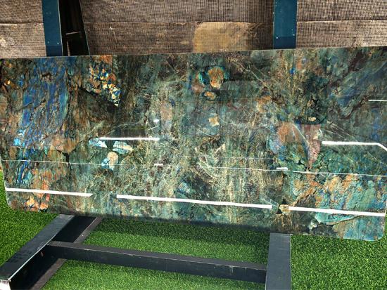 El efecto iridiscente de la piedra aporta una belleza dinámica a los espacios, cambiando entre tonos azules, dorados y morados bajo diferentes fuentes de luz (natural o artificial), creando una experiencia visual envolvente. Sus aplicaciones comunes incluyen la decoración de interiores y exteriores. Por ejemplo, se puede utilizar para personalizar mesas de comedor, mesas de centro, tocadores, escritorios de alta gama, paredes decorativas, suelos, escaleras, así como encimeras de cocina y paredes de baño en proyectos residenciales y comerciales de alta gama, combinando a la perfección funcionalidad práctica con una estética única. Además, es ideal para paredes de gran tamaño, esculturas o incrustaciones en vestíbulos de hoteles, galerías de arte y sedes corporativas, realzando significativamente el impacto visual y la atmósfera artística de un espacio.