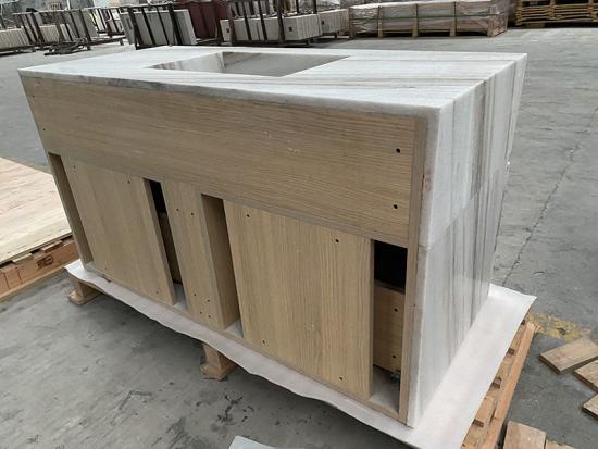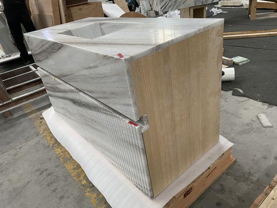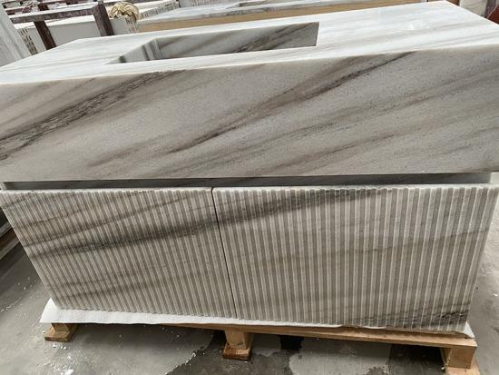 Lavabo integrado de mármol blanco Palissandro Ofrece un lujo supremo, solucionando los defectos comunes de los lavabos de baño tradicionales con una estructura de una sola pieza sin juntas y un rendimiento de piedra de primera calidad.