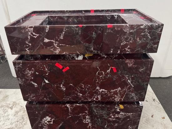 15-30 Days (Depends on project customization requirements)Transforma tu baño en un santuario de lujo clásico con nuestra Lavabo integrado de mármol Rosso Levanto . Procedente de las mejores canteras, Rosso Levanto Es un mármol natural de gran prestigio, célebre por sus profundos y llamativos tonos que van del rojo cereza al berenjena, entretejidos con vetas blancas impactantes y ocasionales vetas verdes sutiles. Esta intensa coloración crea una estética audaz y majestuosa que ha sido un elemento básico del diseño sofisticado durante siglos.