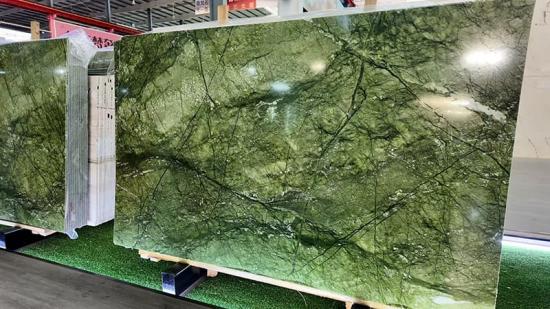 Aquí están las fotos de las losas de mármol Verde Ming: