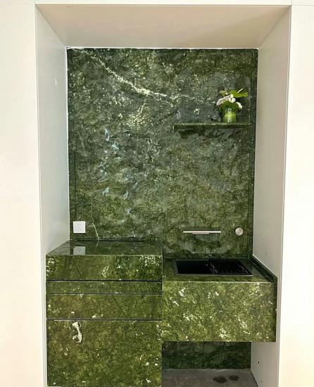 Mármol Verde Ming Se utiliza a menudo para encimeras de tocador, detalles de pared, suelos y elementos decorativos: