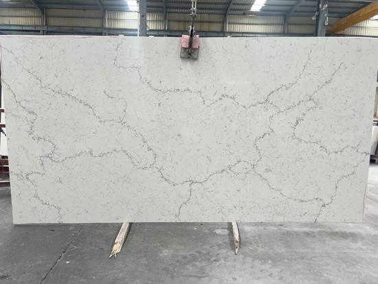 Cuarzo Ática Blanco is available in 2 CM and 3 CM regular and jumbo sizes 3000x1400mm/3200x1600mm/3500x2000mm ,also prefabricated options for design and installation flexibility.